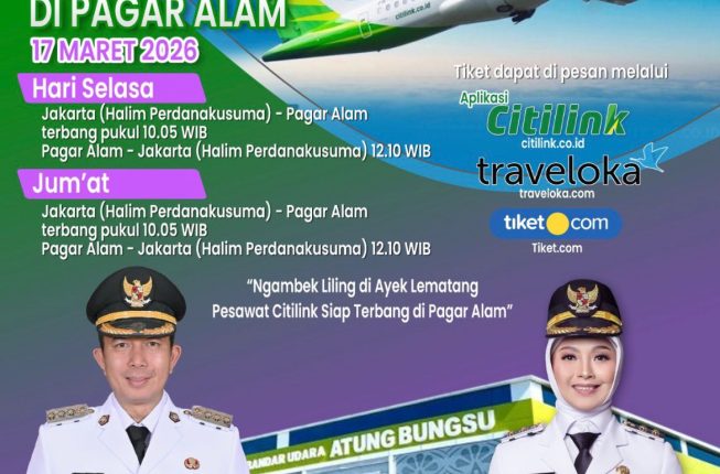 PAGARALAM – Maskapai Citilink resmi membuka rute penerbangan langsung dari Bandara Halim Perdanakusuma menuju Bandara Atung Bungsu Pagaralam. Langkah ini bertujuan untuk mempercepat akses transportasi udara serta mendukung konektivitas antara Jakarta dan Sumatera Selatan. Selain itu, manajemen maskapai menekankan pentingnya pembukaan rute ini guna memfasilitasi kebutuhan mobilitas warga serta para pelaku bisnis. Tim operasional kini fokus memastikan kesiapan teknis armada serta layanan bandara menjelang penerbangan perdana. Upaya ini akan memberikan dampak positif bagi pertumbuhan arus kunjungan wisatawan ke Gunung Dempo.